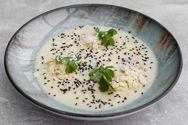 Pumpkin laksa, chicken balls with rice, May mini roll