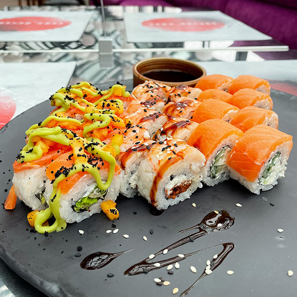 Shuichi (salted salmon, cream cheese, mixed salad, rice, nori, kimchi pineapple, avocado mousse)
