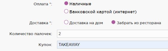 In the "Купон" column, enter the promotional code TAKEAWAY