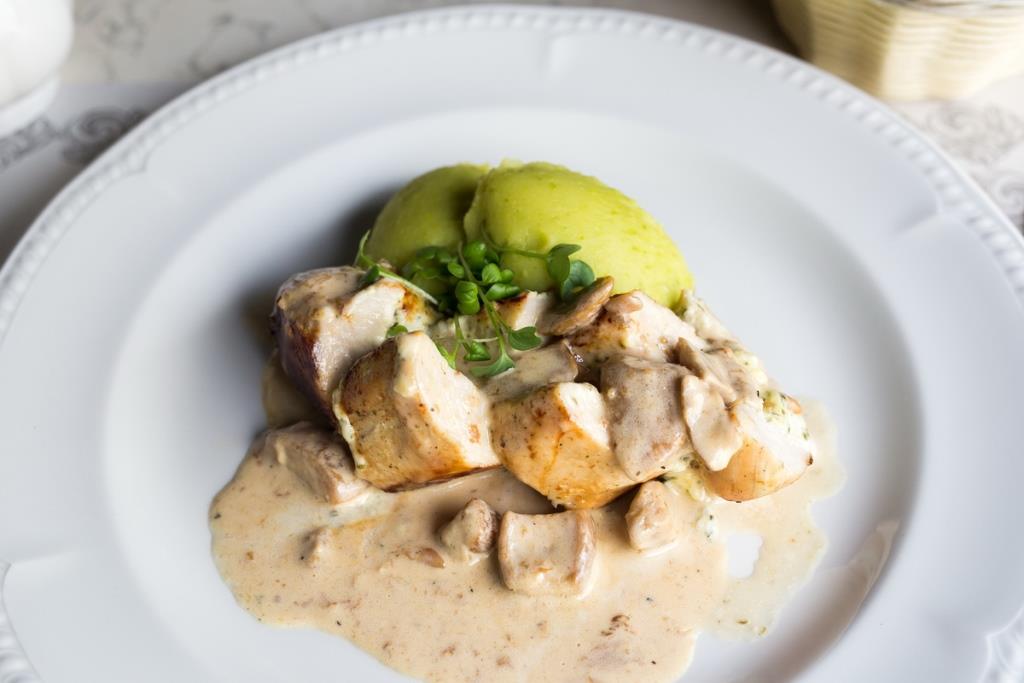 Chicken fillet with porcini mushrooms, cheese and pine nuts